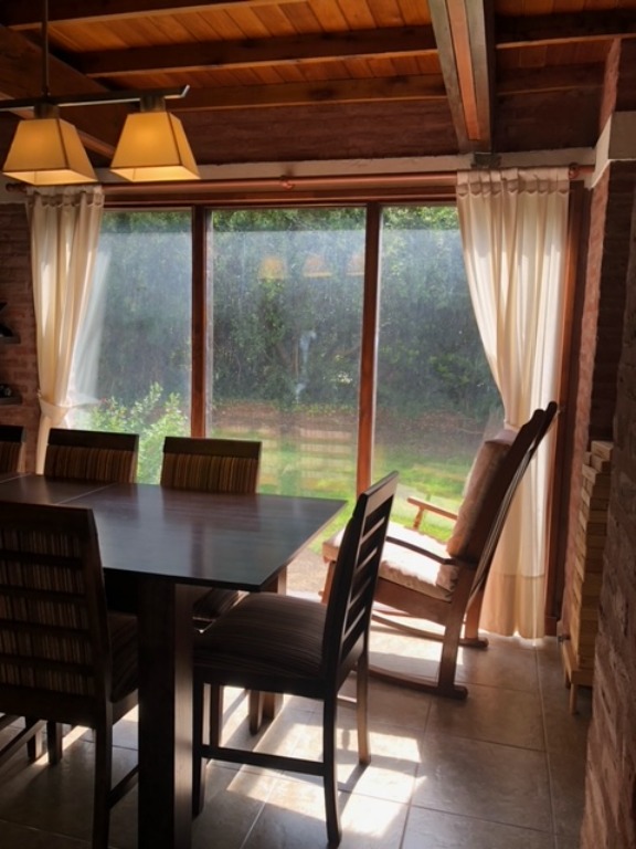 Chalet de dos plantas con garage y piscina. Sobre lote de 843m2. El mismo consta en panta baja de recepción con distribuidor. Sala, cocina comedor, toilette. En desnivel, living comedor con hogar, amplios ventanales al parque. Cocina comedor con ingreso a garage con parrilla.