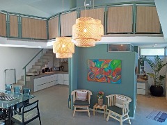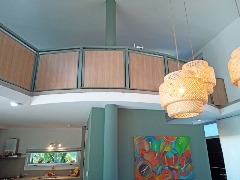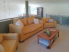 En la planta alta, la que tiene doble acceso se encuentra el cómodo dormitorio con importante vestidor y baño en suite. Tenemos un segundo dormitorio en balcón hacia el living que actualmente funciona como un estar. Desde allí se accede a una importante terraza en el tercer nivel con hermosas vistas.