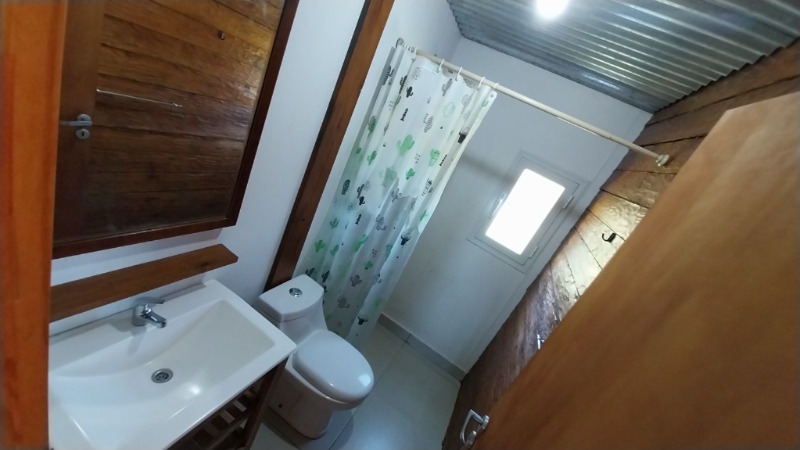 Cabaña Nº 1 : Sala comedor, cocina con barra , dormitorio con placard y baño completo. En planta alta dormitorio con placard y baño completo.