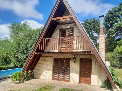 Cabaña en espejo compuesta por dos cabañas: La primera cabaña cuenta con recepción, living con hogar , cocina comedor, baño con ducha y toillette y en planta alta dormitorio y estar con balcon, parrilla exterior y piscina con solarium. La segunda cabaña cuenta con cocina comedorm integrada, toillette y en plata alta dormitorio con espacio para escritorio , baño con ducha y parrilla exterior.
