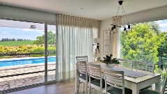 En Planta Alta nos encontramos con un amplio Living-Comedor con hermosa vista el mismo cuenta con cocina integrada y gran isla - Toilette - Desde aquí se accede a la terraza de impotantes dimensiones y vistas panoramicas, aca nos encontamos con la piscina con solarium y un gran Quincho totalmente equipado, que puede funcionar como casa de huespedes. El mismo cuenta con un baño de doble acceso, desde el interio y desde la piscina.