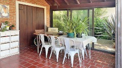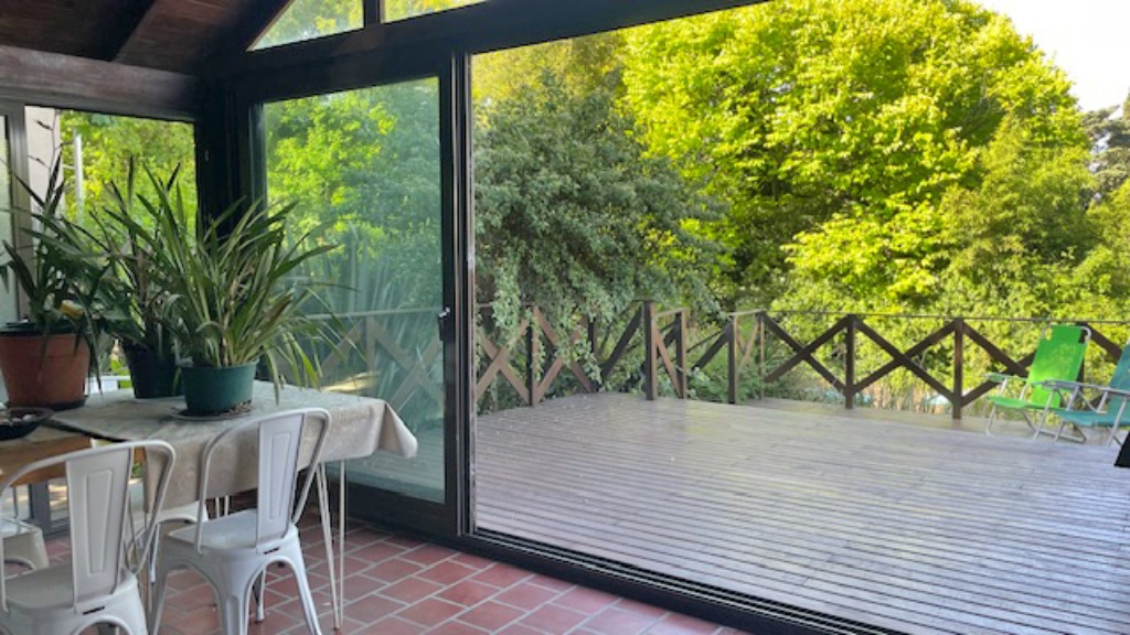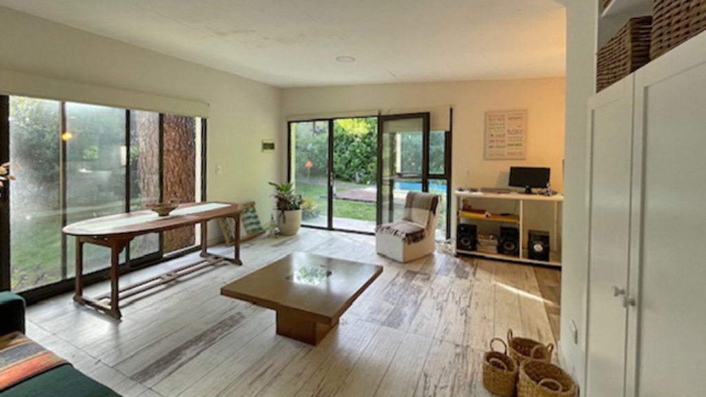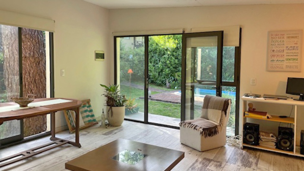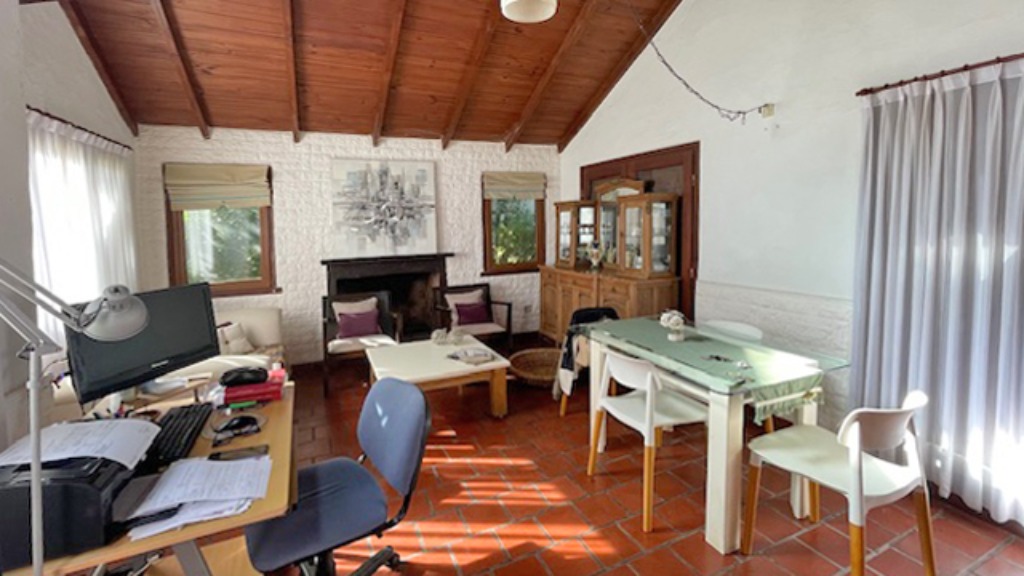 Casa principal: Comedor con hogar a leña. Doble ventanal al quincho. Cocina con salida a quincho. Baño completo con ducha. Dormitorio con placard al frente. Dormitorio con vestidor. Quincho vidiado con parrilla.