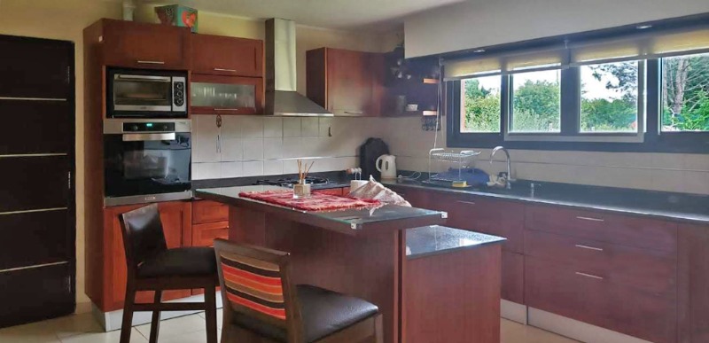 Excelente propiedad con las siguientes comodidades: PB: Living-comedir con hogar en desnivel - Comedor de diario – Moderna cocina con isla con salida a garage doble – Baño completo – Dormitorio con placard PA: Baño completo – Dos amplios dormitorios con placard, uno con balcón-terraza hacia parque trasero. Parrilla exterior – Parque con frutales – Patio seco – Piscina al frente con vista abierta