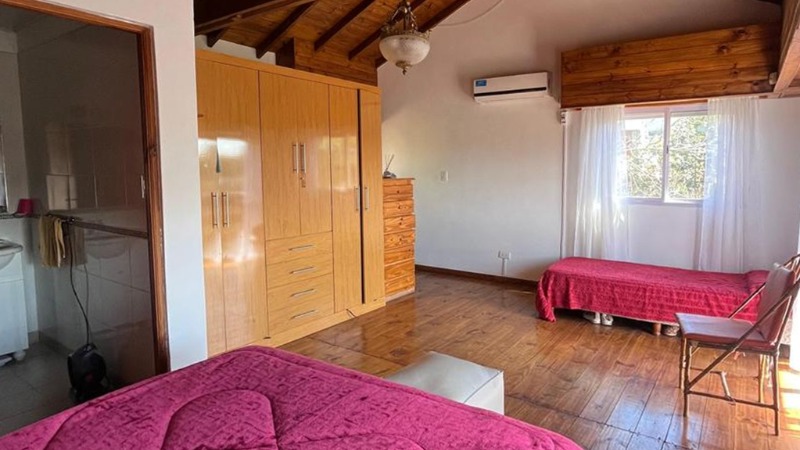 Amplio quincho estar- comedor, cocina con barra, parrilla, baño completo, dormitorio, lavadero, playroom en planta alta.