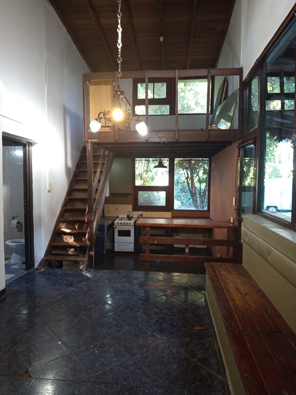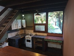 Cabaña Nº 1 : Sala comedor, cocina con barra , dormitorio con placard y baño completo. En planta alta dormitorio con placard y baño completo.